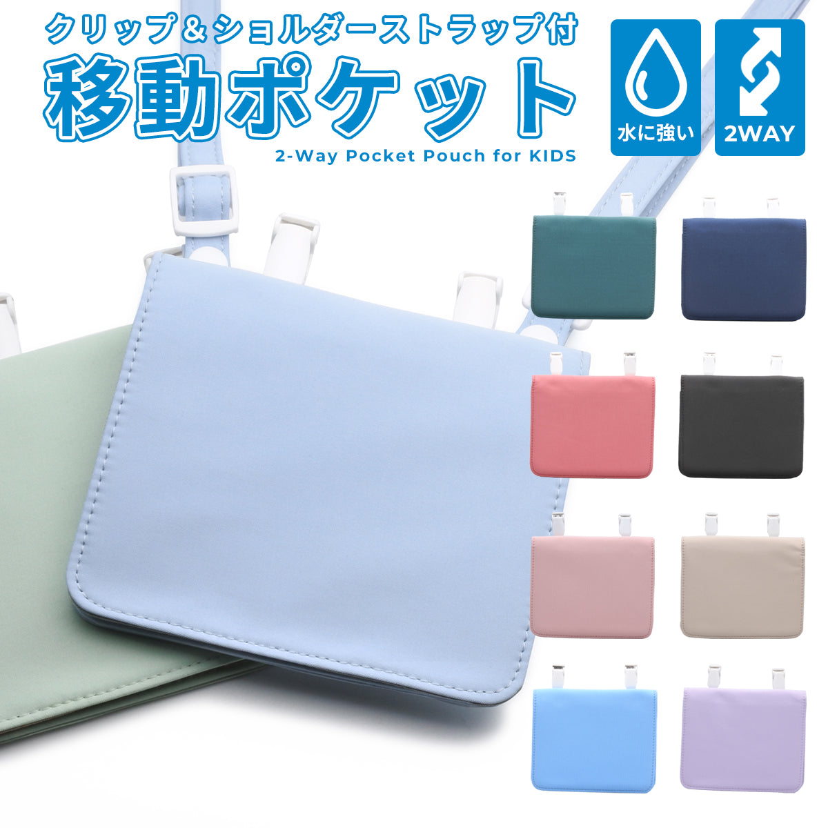 ショルダーでもクリップでも使える、お子さま向けの2WAY移動ポケット。