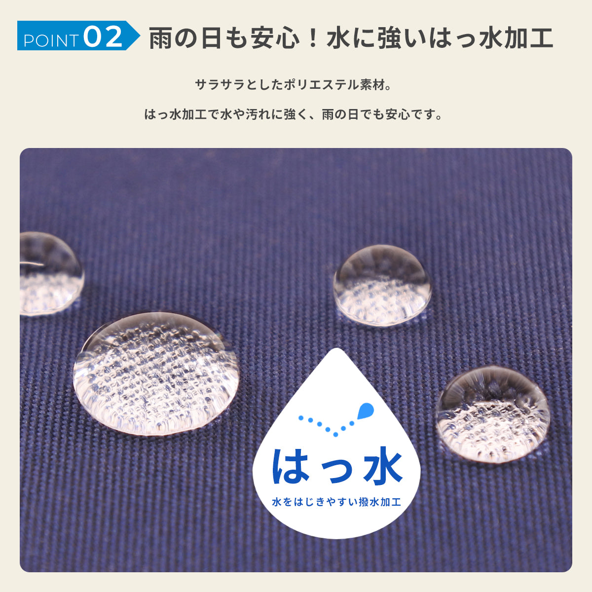 ● 雨の日も安心!水に強いはっ水加工
