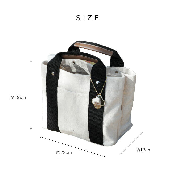 ミニトートバック レディース 帆布トート 軽量 チャーム付き トートバック 小さめ 仕切り キャンバス 軽い おしゃれ かわいい ミニバック ランチバック ハンドバッグ 通勤 通学 散歩 大容量 マチ広 幅広 プレゼント 小型 軽い シンプル
